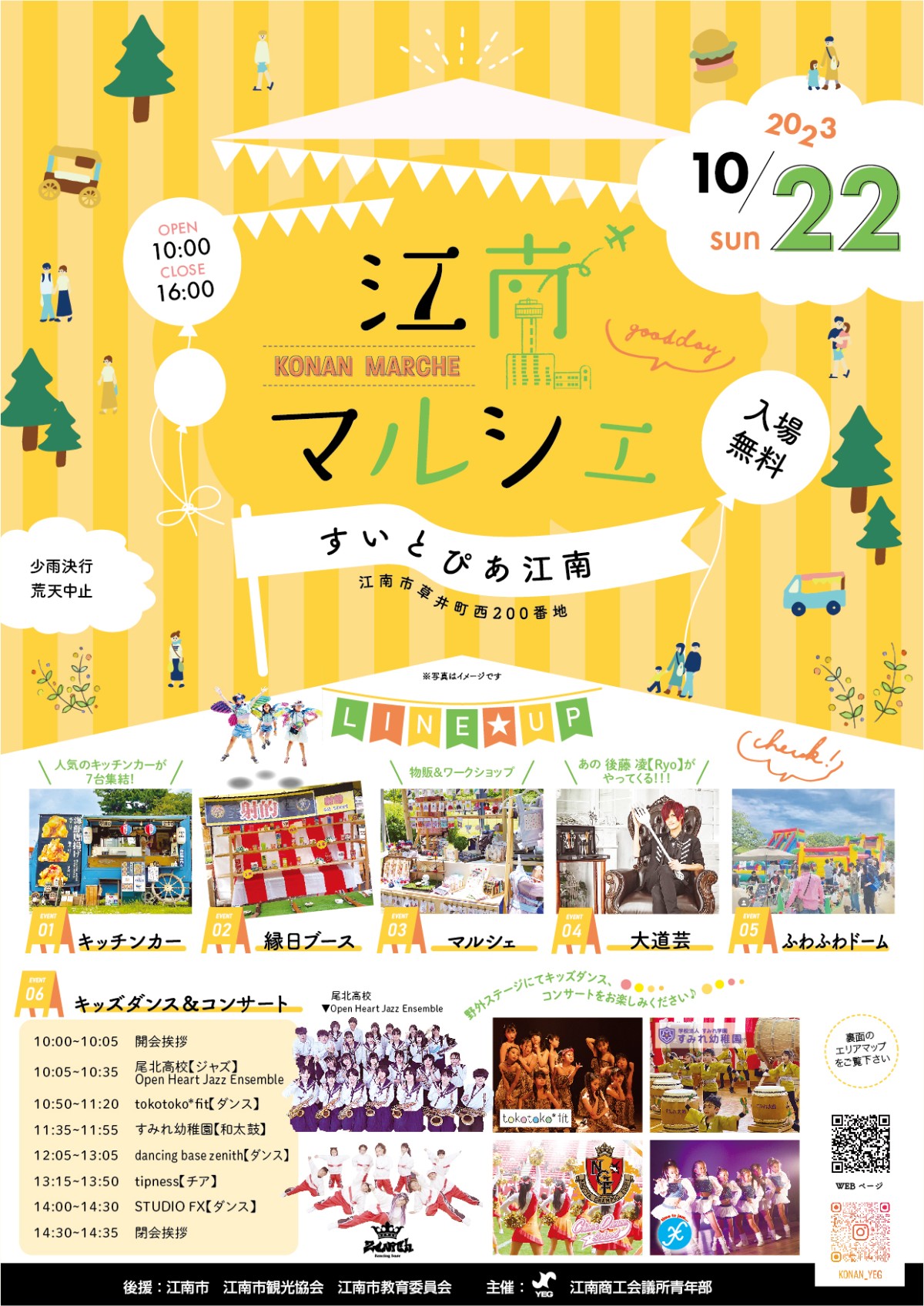 趣旨に賛同くださった約30の店舗(キッチンカーや縁日、ふわふわドーム、ワークショップ等)や芸能が当日我々と共に会を盛り上げてくれました。
