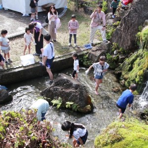 ・村上観光施設 鮭の博物館公園立地を生かした 岩場等ある水路内での魚のつかみどり及び採れたて串焼き