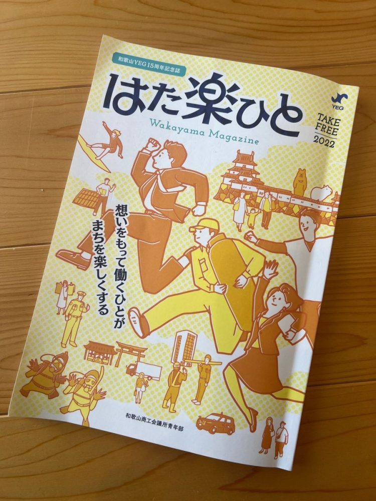 「はた楽ひと」という記念紙は、YEGメンバー(人)の仕事にフォーカスされた雑誌で、市内の高校や飲食店などにも配布され、和歌山ではこんな大人が想いを持って働いているということを知ってもらう素晴らしい記念紙となりました。