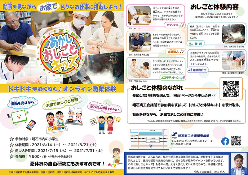 ・5件の出展者によるデモンストレーション動画を作成し、Youtube上で公開した。また、参加者に向けて、各出展者から「おしごと体験キット」を配布した。
