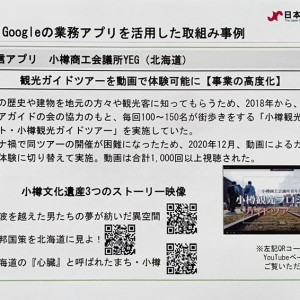 9月15日に開催された日本商工会議所 第708回常議員会・第287回議員総会にて、小樽YEGの事業が「商工会議所活動のデジタル化の成功事例」として報告されました。コロナ禍に伴い「小樽観光プロジェクト・小樽観光ガイドツアー」を動画(YouTube)によるガイドツアー体験に切り替えて実施した結果、これまでの現地参加者数(100名~150名)の10倍以上の方々に視聴体験された功績が評価されました。その効果もあり、いまは再生回数が1万回を超えております。
