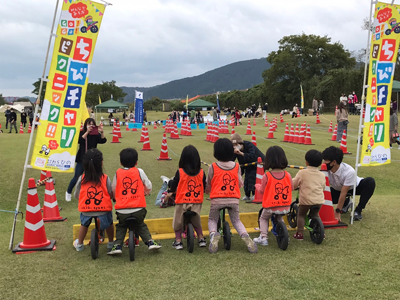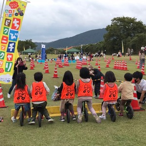 キックバイクを使用し、四万十川河川敷キャンプ場ならではの起伏をいかした地形でコースを設定し、小学校低学年までを対象に元気に走り回ってもらいました。キックバイクをレンタルの場合は1回100円、持ち込みは無料。