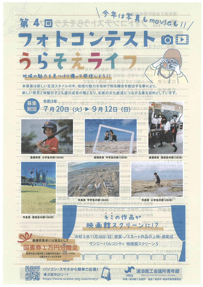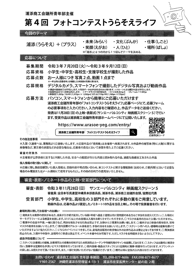 未分類 30Nov2021 浦添YEG 第4回フォトコンテストうらそえライフ ブロック:九州ブロックYEG 道府県連:沖縄県連 単会名:浦添YEG 事業名称:第4回フォトコンテストうらそえライフ 開催日時:2021年11月28日(日) 開催場所:サンエーパルコシティ 映画館スクリーン5 開催目的・内容:浦添市内の小中高生を対象に「浦添の魅力発見・発信」をテーマとしてる地域交流事業です。 新しい生活スタイルの中、地域の魅力を改めて知る機会を創出する事により、新しい発見と体験が子どもたちの成長の糧となり、未来の文化創造につながることを目的としております。 未分類 小浜YEG 第一回エンゼルライン祭り 大村YEG MORIZONO COLOR~#おおむらツナグ~2021 関連記事一覧 小浜YEG 第一回エンゼルライン祭り 常滑YEG 常滑YEG議会 大野YEG 結のアニ×スポ ~アニメの聖地「大野」で地域を盛り上... 村上YEG いいねっか村上2021 さいたまYEG 6月例会「講師例会」 富山YEG YEGフェア2021