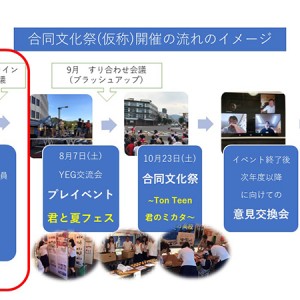 しかし、今回の「高校生合同文化祭(仮)」の主催自体は、敦賀YEGとなりますが、企画・運営を各高校の生徒たちと共に行うことで、継続性に繋げ、また、数か年計画を立て、成長性を見据えた事業にすることで、多種多様な発展に繋げていきたいと考えております。