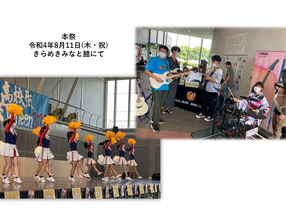 【本祭の開催】 令和4年8月11日(木・祝)10:00~17:00に、きらめきみなと館イベントホールにて、以下の内容のイベントを開催しました。 ・高校生たちによるダンスや歌のステージ発表 ・参加者同士で交流するミニゲーム、カードゲームなどプチイベント ・SNSを利用した交流イベント(景品あり) ・唐揚げやメロンパン、デザートなどキッチンカー(高校生が出店を依頼)・敦賀工業高校:各科の無料体験コーナー・お祭り屋台コーナー(輪投げ、スマートボール)・浴衣レンタル 着付けコーナー・ヤマハと福井県による楽器体験会(おとまち@福井) ・高校生指導による地元の民謡踊り 本祭当日の様子を地元ケーブルテレビ局RCNさんがまとめてくださいました。