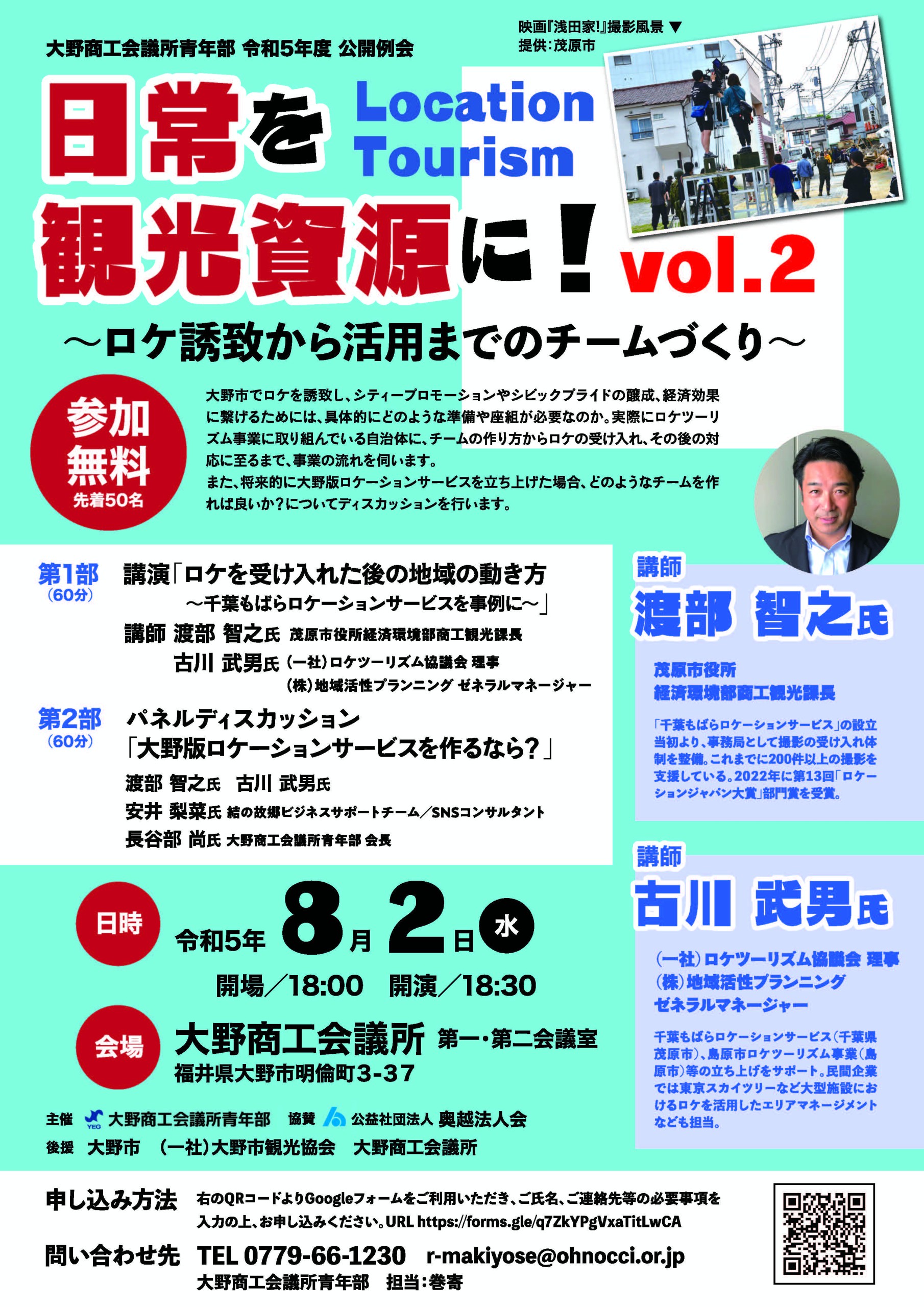 今年は、千葉県茂原市役所の講師を招き、ロケツーリズム事業におけるチームの作り方からロケの受け入れ、その後の対応までの流れを学びました。これによって官民連携の重要性を認識し、大野市役所と大野YEGが協力して「大野丸っとロケサポ隊」を発足。大野市内で行われる撮影や制作現場の要望などに、民間ならではの対応力によってサポートとおもてなしを実施しました。