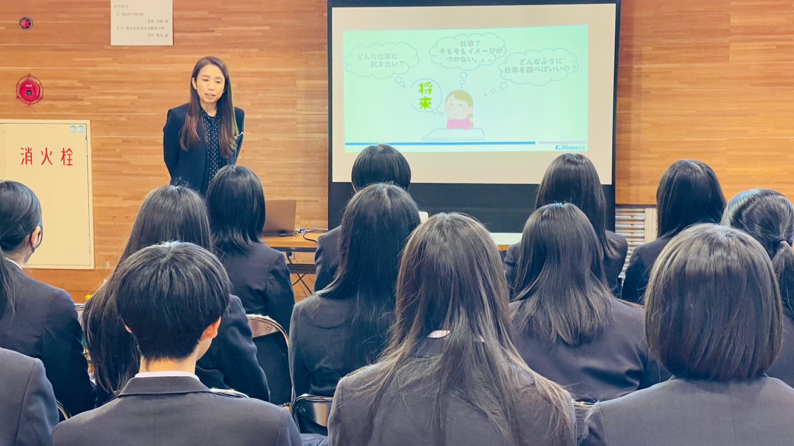 そして、今年から「あきんどゼミ」へと名称を変更し、より多くの高校生に私たちの想いを伝えるべく、希望する高校生のみに来てもらっていた「あきんど塾」から、我々メンバーが高校へ出向き、1学年の全生徒320人に向けて、授業の一環として行う形で開催しました。
