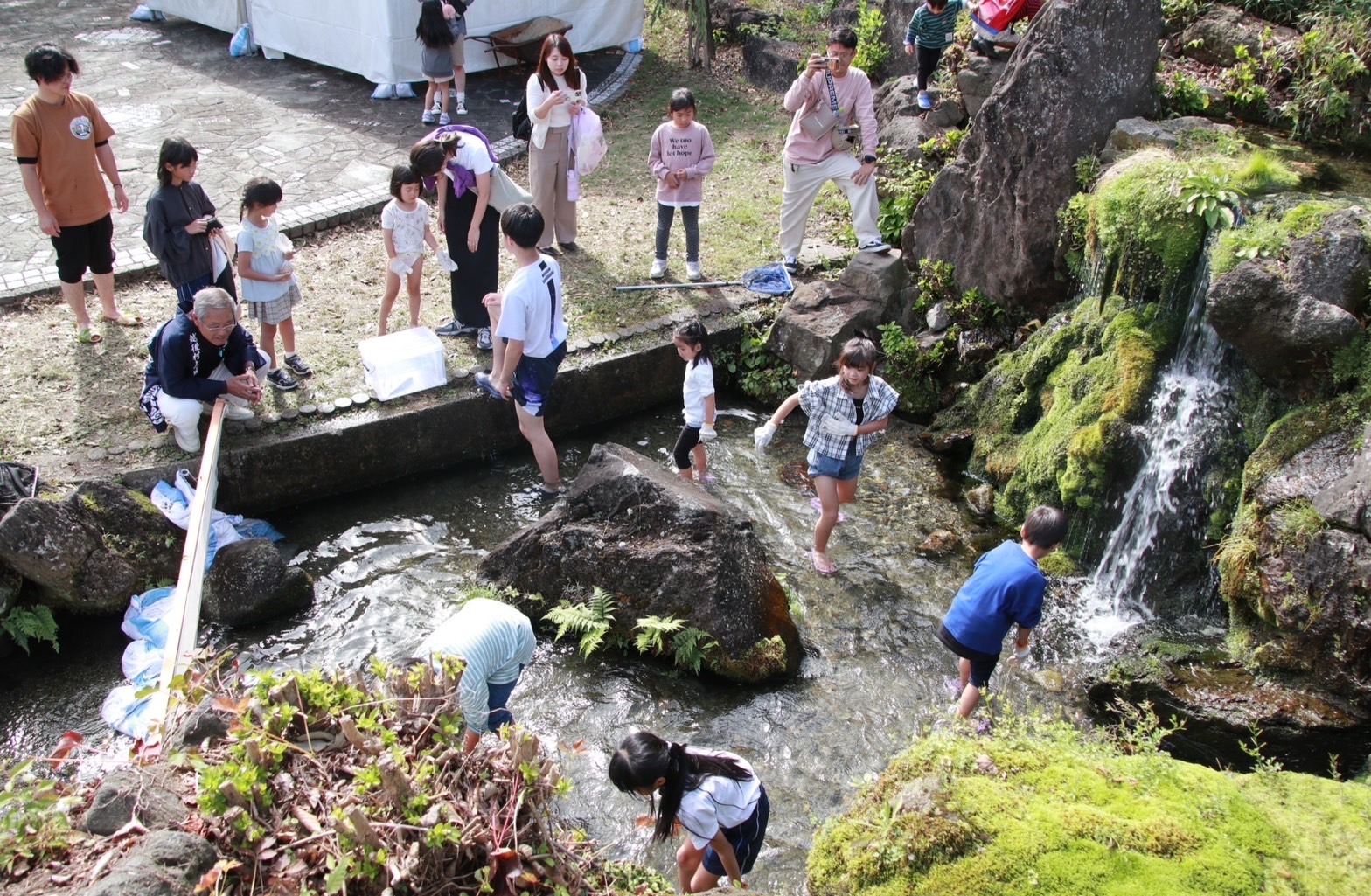 ・村上観光施設 鮭の博物館公園立地を生かした 岩場等ある水路内での魚のつかみどり及び採れたて串焼き