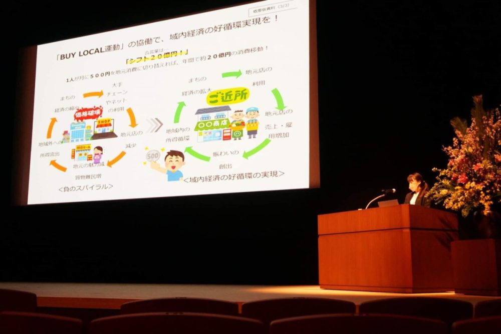 第二部では、和歌山大学足立教授による記念講演「ローカルファーストが未来を創る」を開催し、ローカルファーストの精神が未来の和歌山市を創る大切な要素であることを学ぶことができました。