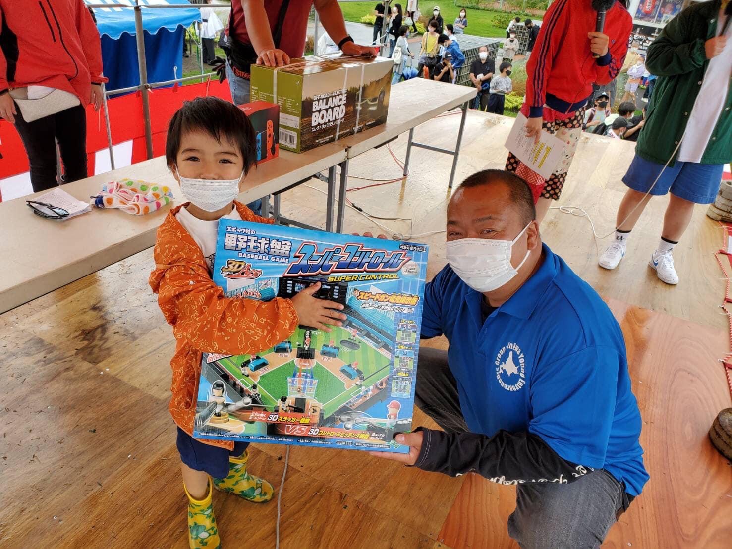 ・お楽しみ抽選会/子ども抽選会 1枚300円の抽選券を事前から販売し、フェスティバルのフィナーレ直前に抽選会を行いました。商品には、10万円の商品券や家電などを用意し、大いに盛り上がりました。 また、昼間は子供用の抽選会を開催。こちらは、抽選券の販売ではなく、チラシに抽選券をつけて無料で配布することで、広告展開との相乗効果も発揮されました。 なお、これらの商品には、市内および単会メンバーから仕入れたり、協賛いただいたりと、青年経済団体として、しっかりと地域の経済活性および事業者告知を結びつけることを意識しました。