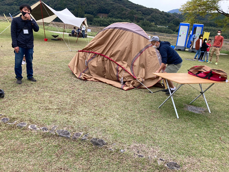 感染リスクの少ない屋外レジャーとして今需要が高まっているキャンプ。土佐清水snow peak様のご協力のもと、テント・タープの展示を行いました。またテントの設営講習・焚火体験を行いキャンプ初心者にも分かりやすく説明がありました。