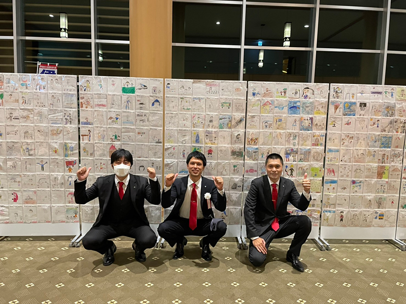 そこで今年度はスローガンに「繋げる」を掲げ、今まで共に成長して来た地域の子供達をはじめとする関係各所の方々との絆を絶やすことなく次代へと繋げることを目標に活動してきました。子供達にソウゾウする力(想像と創造)を身に付け、郷土愛と夢を持ち続けてもらう事を目的として、地元の小学校に絵本「お金ってなぁに?」を寄贈しました。さらに、一人でも多くの子供達にこの本を読んでもらうため、本に関するクイズと将来の夢を叶えた自分の姿を描いてもらうスペースを合わせたキーワードラリーを配布しました。そして、伊勢YEG設立35周年記念式典で子供達の夢が描かれた実際のキーワードラリーを展示し、列席者の方々に伊勢の地には未来を輝かせる力がたくさんある事を証明すると共に、私たちがこれからも地域と一体となり、地元の子供【伊勢っ子】たちが郷土愛と夢を育める事業を継続して行うことで、この力を必ず未来へ「繋げる」ことを宣言しました。