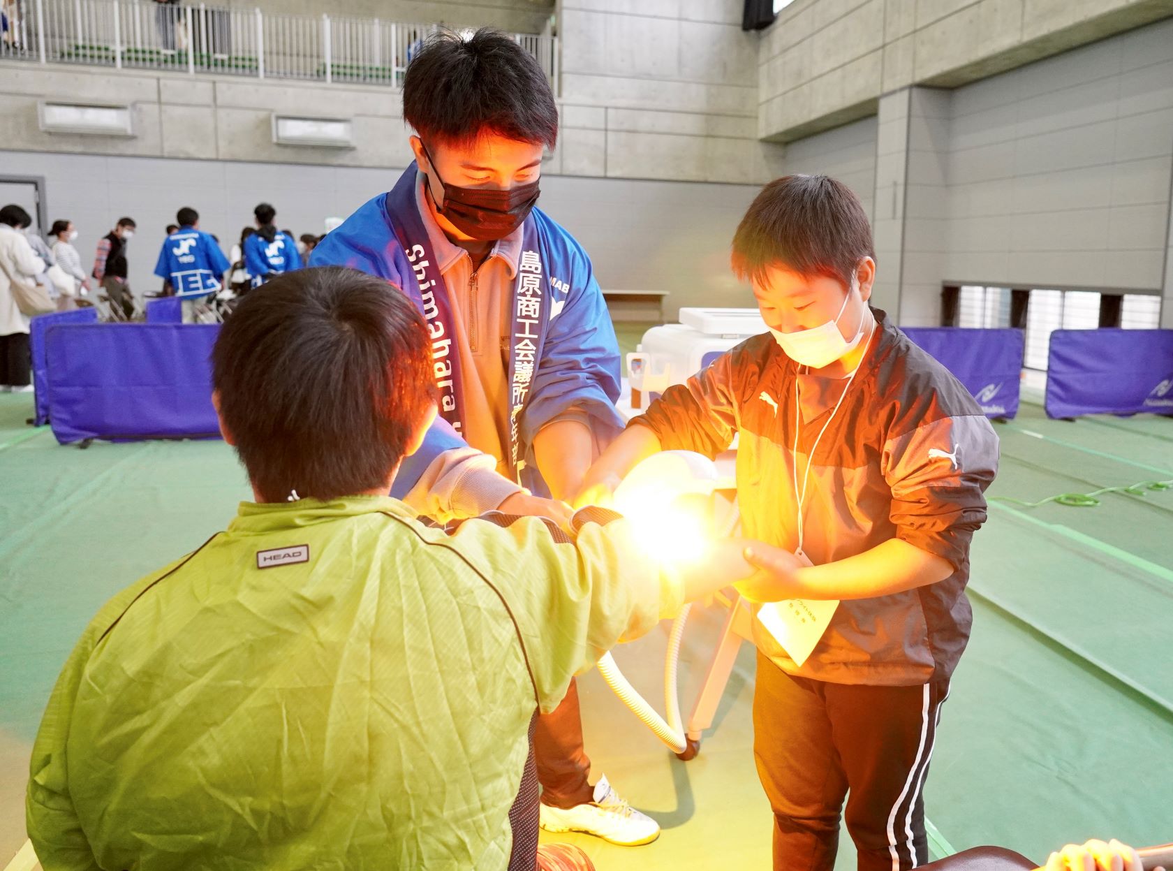 開催目的・内容:将来を担う子どもたちに身近な仕事への興味関心を深めてもらうとともに郷土愛を育んでもらおうと、島原YEG(松本龍亮会長、48人)は11月23日、島原市内の小学4~6年生の児童を対象とする初の職業体験イベント「こども達の未来に向けた島原職業体験教室」を市霊丘公園体育館・弓道場で開いた。市内の児童ら約230人が参加した。 教室では、島原YEGの会員事業所を中心に島原半島内の多様な11業種を体験できるブースを設置。子どもたちは事前申込時に希望した3つの業種を中心に、ドローン操縦や消火器を使った消火体験、バックホウの操縦体験、オイルハンドマッサージ体験、マネキンを使ってヘアアレンジに挑戦する美容師体験などを楽しんだ。このほか、体育館駐車場ではパトカーの試乗体験会なども行われた。 同日に霊丘公園グラウンドで開催予定だった「気球フライト体験」(搭乗無料)は、天候不良により11月27日に延期して行われ、島原市内の児童や保護者など約130人が巨大気球2機に乗り込み、上空からひと味違った故郷の景色を楽しんだ。 松本会長(44)は「『若い世代の地元離れ』や『人手不足』という喫緊の課題解決に向け、まずは地元にどのような仕事があるかを知ってもらい、様々な体験を通して島原を好きに、そして将来的には地元で活躍する人を増やしたいという思いから、青年経済団体である我々商工会議所青年部ならではのイベントとして企画した。当初の予想来場者を超す賑わいと体験を楽しむ子どもたちの姿に、改めてこの事業をやって良かったと感じている。今後も地元島原を盛り上げる活動に尽力していきたい」と力を込めた。